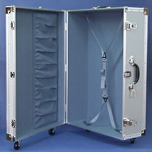 本体色:シルバー タイプ:Sタイプ(標準型) 製品寸法:外寸 785×575×260mm 内寸 765×555×蓋60/本体186mm 製品重量:9.2kg 材質:主体板 アルミ合板(表面アルミエンボス、芯材ベニヤ) 開口部 アルミサッシ 内装:プラバックル付ベルト 蓋内:ポケット有りキャスター:キャスター付(直径50mm) 特徴:・主体板には厚さ5.5mmのベニヤに0.3mmのエンボスアルミを張り合わせ、開口部には アルミサッシを使用するなど、各部補強が充実しており強度面に優れたアルミケースです。