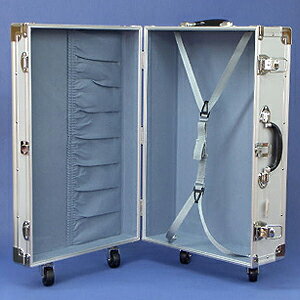 本体色:シルバー タイプ:Sタイプ(標準型) 製品寸法:外寸 605×410×200mm 内寸 585×390×蓋60/本体126mm 製品重量:5.7kg 材質:主体板 アルミ合板(表面アルミエンボス、芯材ベニヤ) 開口部 アルミサッシ 内装:プラバックル付ベルト 蓋内:ポケット有りキャスター:キャスター付(直径50mm) 特徴:・主体板には厚さ5.5mmのベニヤに0.3mmのエンボスアルミを張り合わせ、開口部には アルミサッシを使用するなど、各部補強が充実しており強度面に優れたアルミケースです。