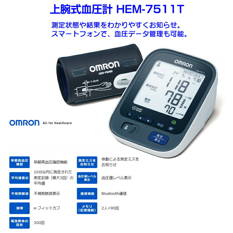 ★100円クーポン配布中★ オムロン 上腕式 血圧計 HEM-7511T 健康管理 家庭用 デジタル血圧計 測定データをスマホへ転送 上腕血圧計 測定時の室温も記録 HEM7511T HEM-7510C の後継 omron